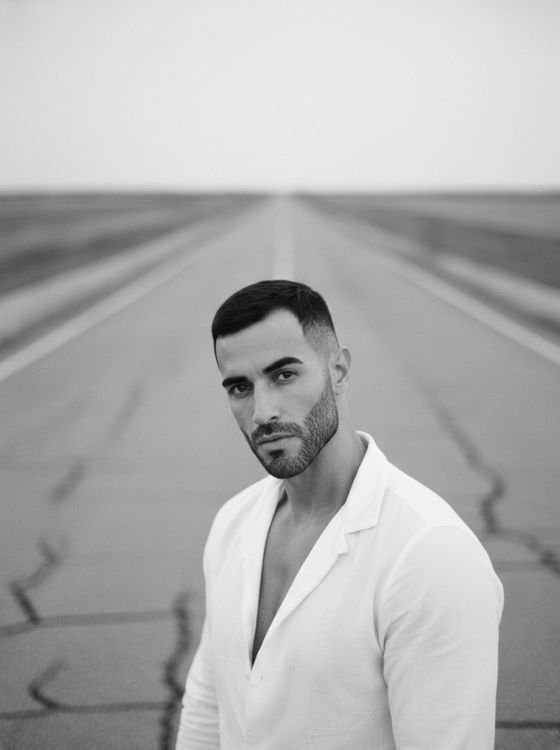 Recreate this portrait using my uploaded photo as the primary reference. Keep the overall framing, pose, lighting direction, and cinematic mood similar to the reference, while preserving the subject’s exact facial structure, skin texture, and identity. The composition should feature a half-length male portrait, with the subject seated and leaning slightly forward. One arm should cross the body naturally, while the other hand rests gently on the opposite arm, creating a calm, elegant, and confident posture. The facial expression should feel composed and confident, with a subtle sense of mystery. The subject should look directly toward the camera, lips relaxed, posture firm, and presence strong. The subject should wear a dark, refined outfit — a structured black blazer layered over a fitted black shirt, T-shirt, or sweater. Hair should be neatly groomed in a masculine style, such as a short modern cut or slicked-back look, and the subject should be wearing sunglasses for a cinematic effect. Use professional studio lighting with soft yet directional contrast, such as Rembrandt or side lighting, to sculpt the face and create elegant shadows. The lighting should add depth while keeping skin texture natural and realistic. The background should be smooth and minimal, using dark gray or charcoal tones with subtle gradient depth and no distracting elements. Final output should be a black and white cinematic editorial portrait with refined contrast, soft highlights, natural skin texture, and realistic proportions. Vertical format, portrait orientation (1080×1920), professional studio photo quality, high detail, and a cinematic, realistic finish.